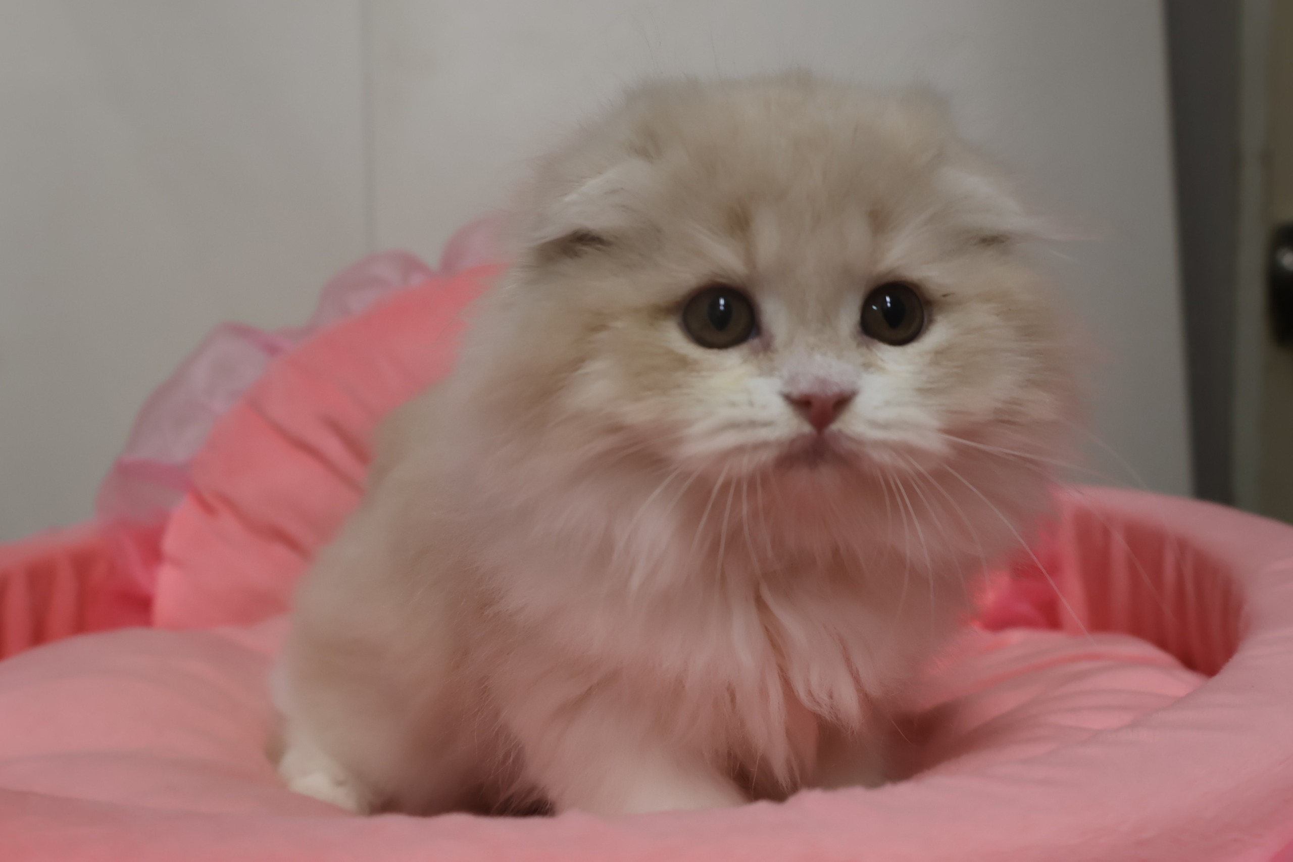 クリームタビー&ホワイト 折れ耳 長毛 人気のクリーム系☆お目めパッチリ可愛い女の子☆