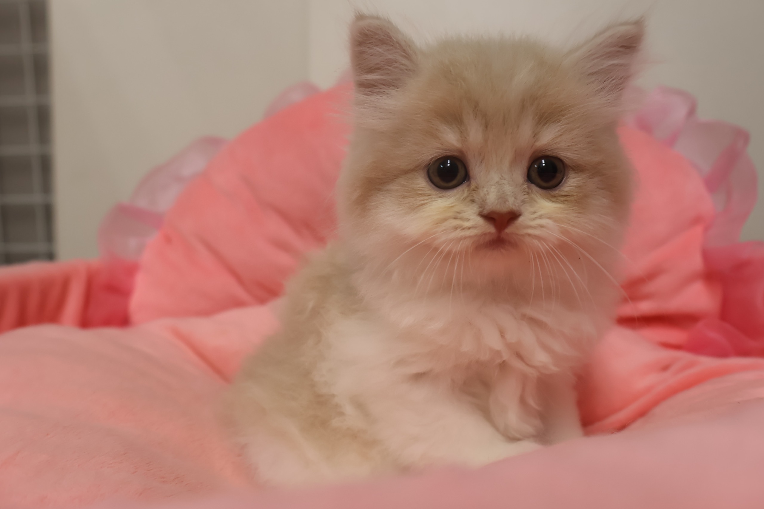 ☆自家繁殖☆ クリームタビー&ホワイト 立耳 長毛 人気のクリーム系☆お目めクリクリ可愛い女の子☆