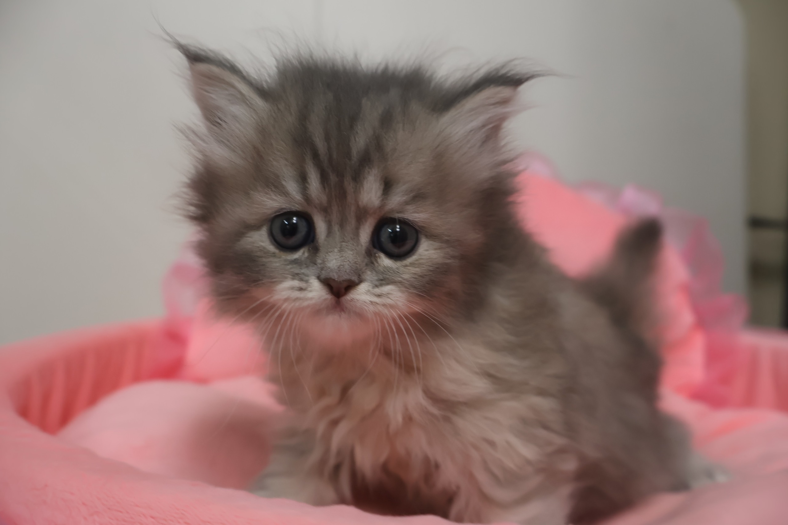 ☆自家繁殖☆ ブルーパッチドタビー&ホワイト 中足 長毛 人気のブルー系☆お目めパッチリ可愛い女の子☆