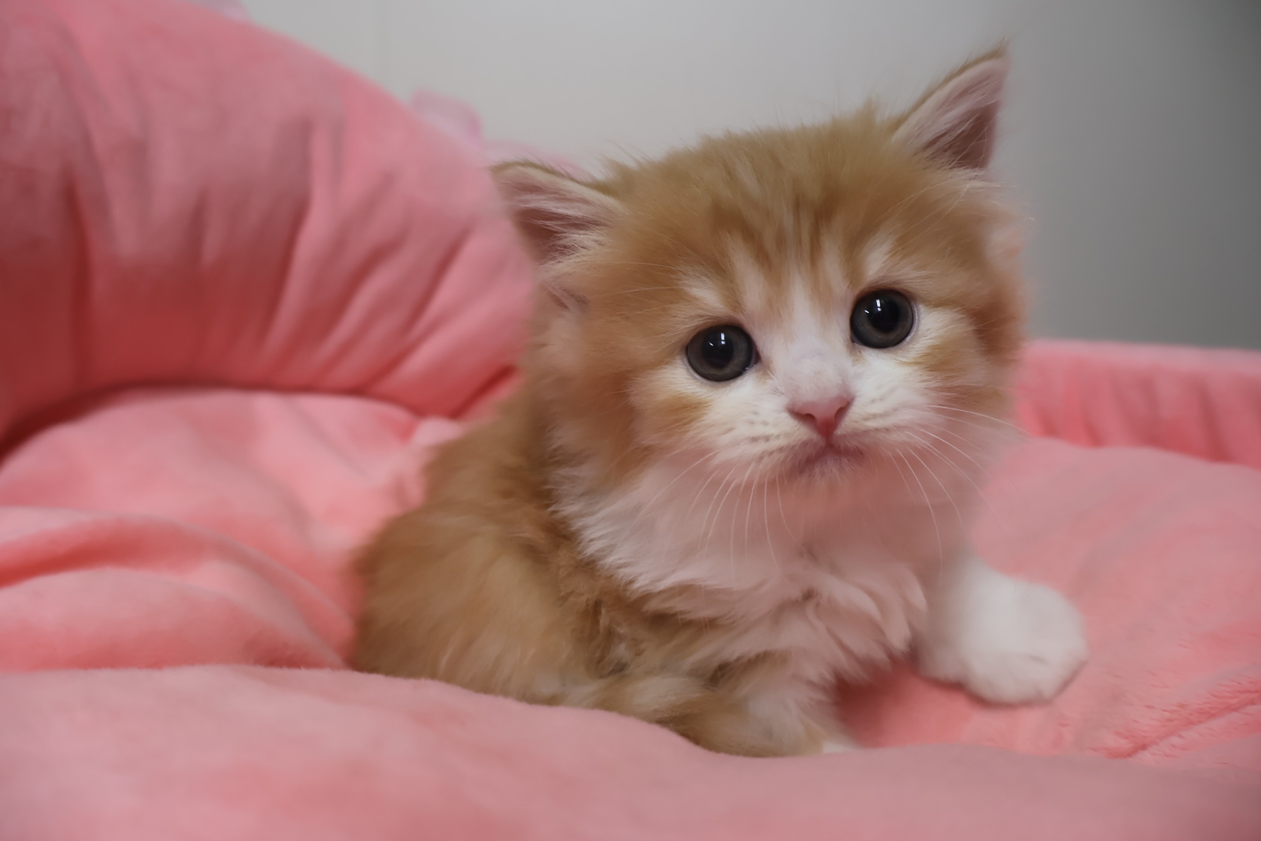 ☆自家繁殖☆ レッドタビー&ホワイト 立耳 長毛 お目めクリクリ可愛い男の子☆