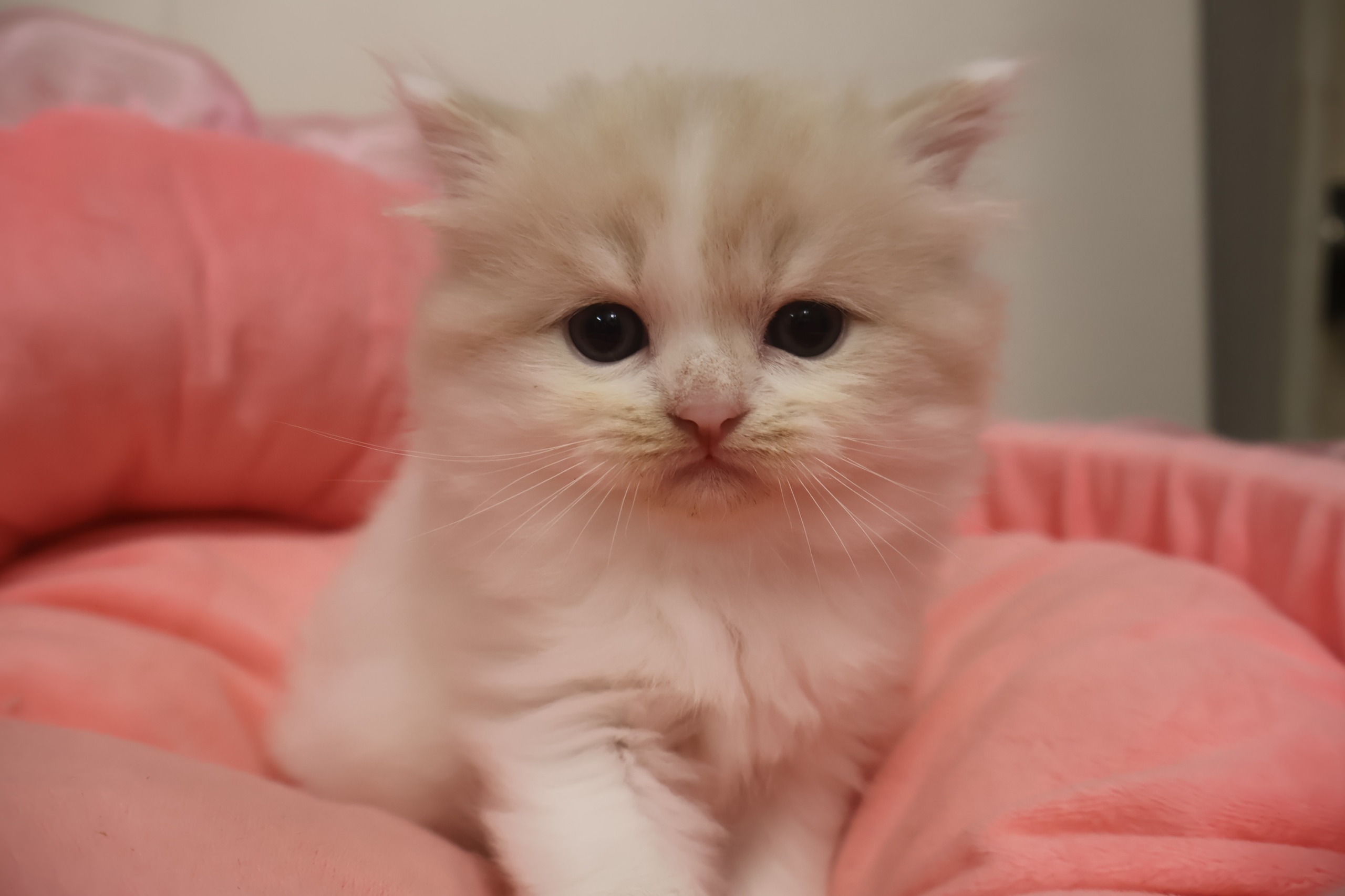 ☆自家繁殖☆ クリームタビー&ホワイト 立耳 長毛 人気のクリーム系☆お目めクリクリ可愛い男の子☆