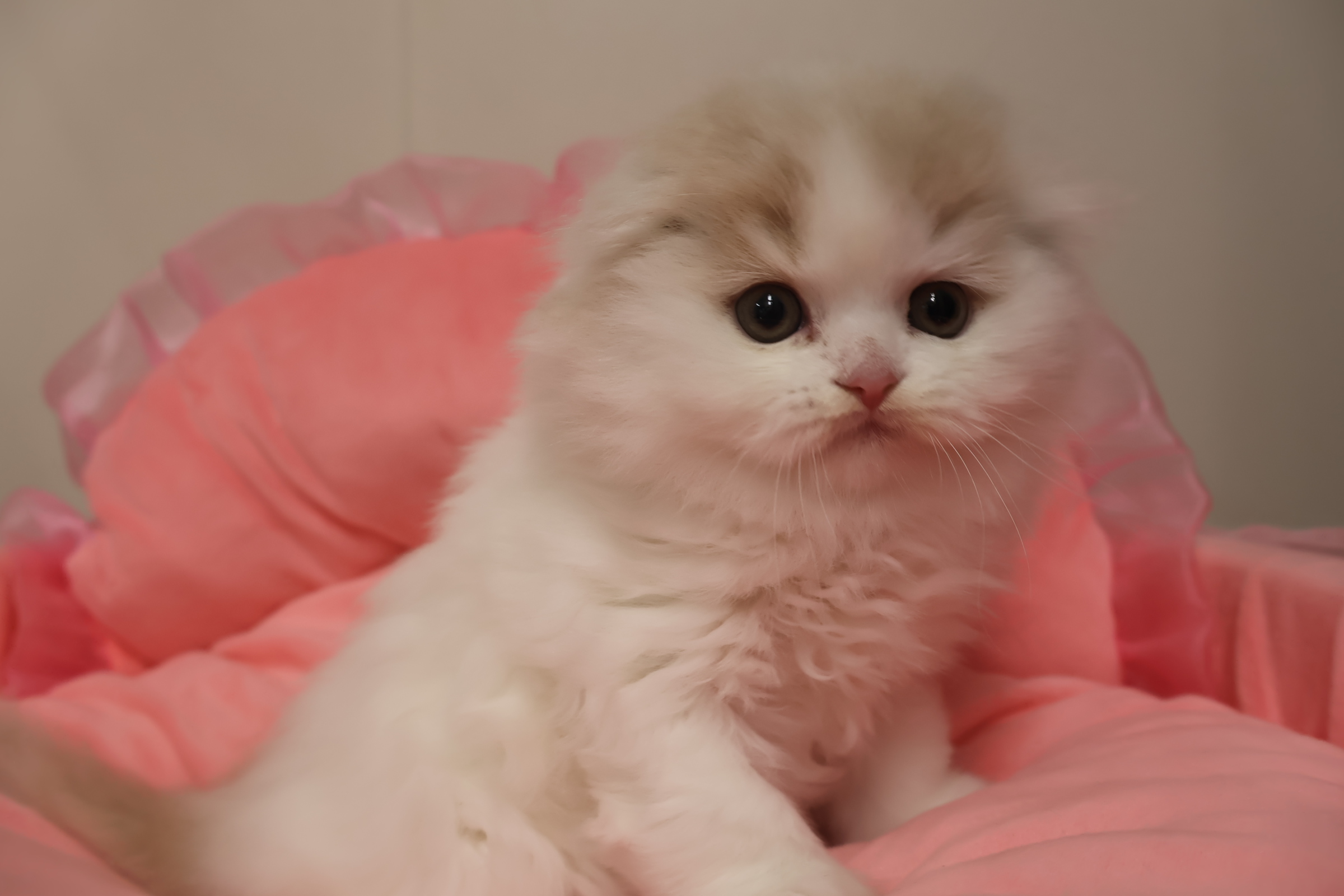 クリームタビー&ホワイト 折れ耳 長毛 人気のクリーム系☆お顔真ん丸の可愛い男の子☆