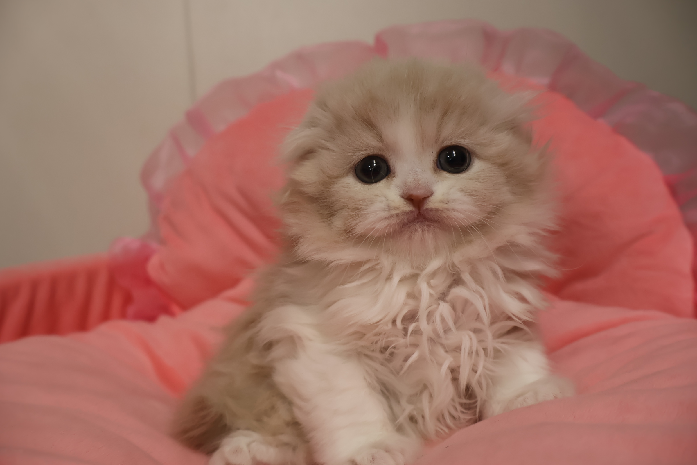 クリームタビー&ホワイト 折れ耳 長毛 人気のクリーム系☆お顔真ん丸の可愛い男の子☆