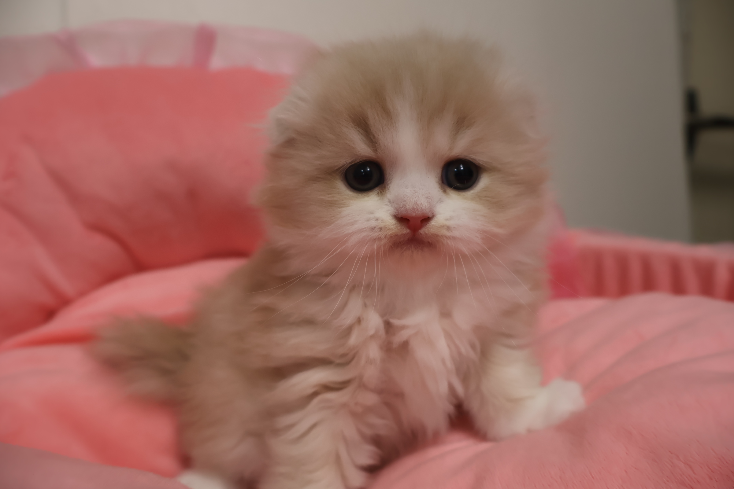 クリームタビー&ホワイト 折れ耳 長毛 人気のクリーム系☆お顔真ん丸の可愛い男の子☆