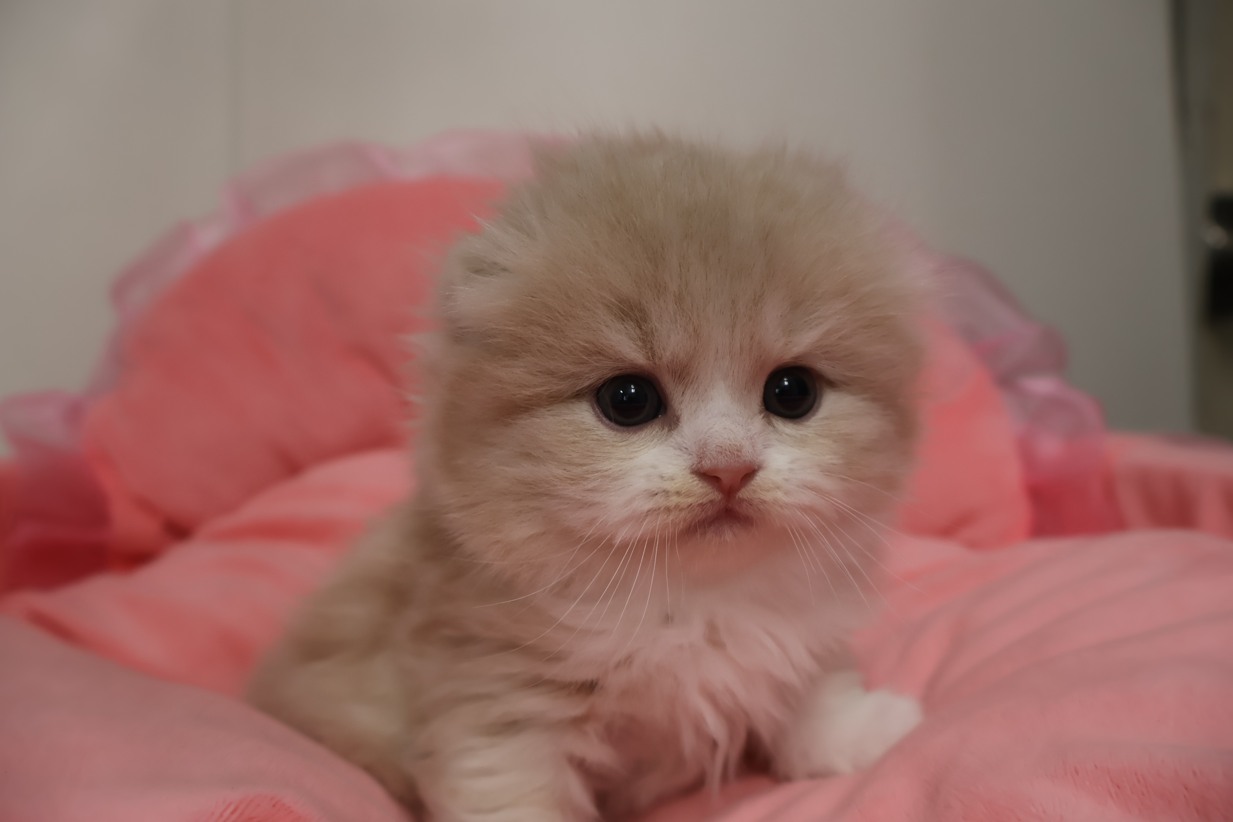 ☆自家繁殖☆ クリームタビー&ホワイト 折れ耳 長毛 人気のクリーム系☆お顔真ん丸の可愛い男の子☆