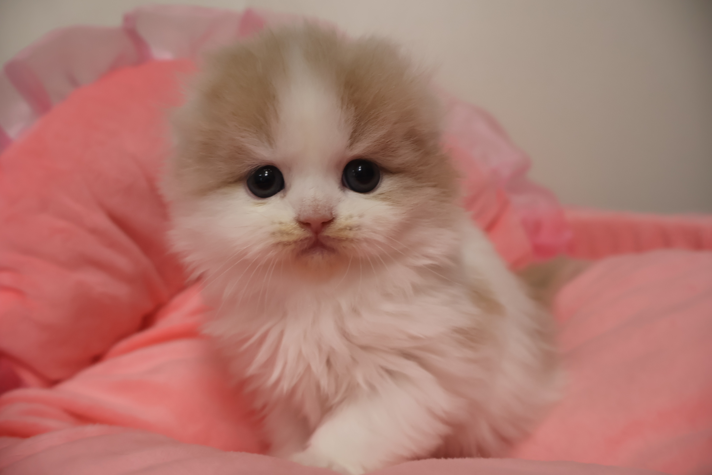 クリームタビー&ホワイト 折れ耳 長毛 人気のクリーム系☆お顔真ん丸の可愛い男の子☆