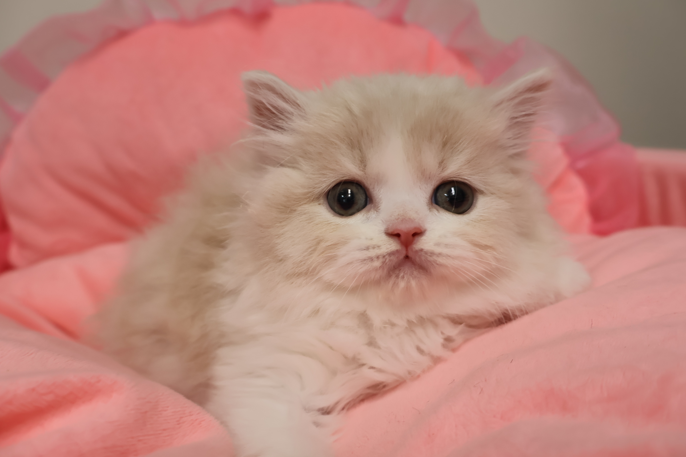 ☆自家繁殖☆ クリームタビー&ホワイト 立耳 長毛 人気のクリーム系☆お目めクリクリ可愛い女の子☆ほんの少しだけ歯並びがそろっていない