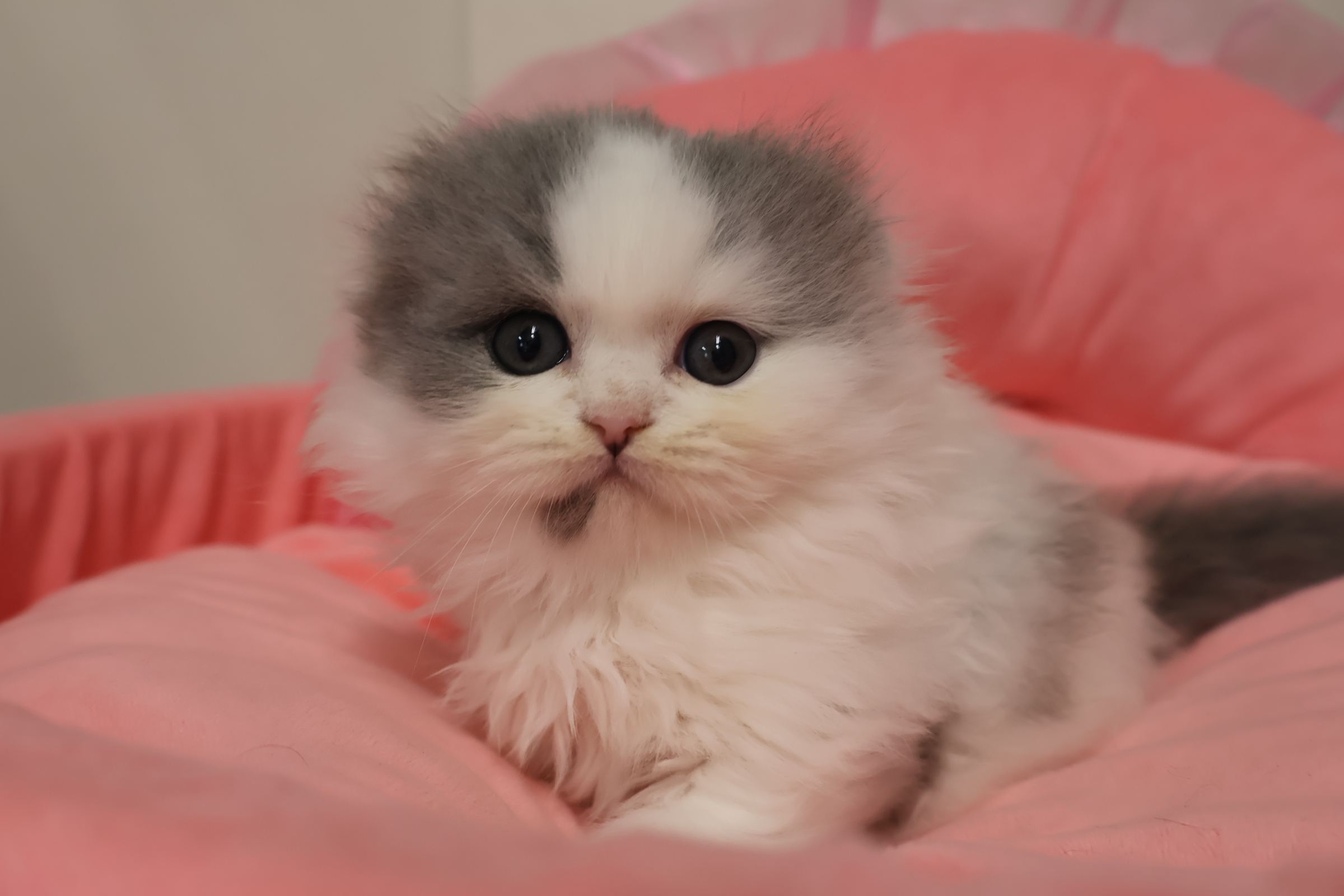 ブルー&ホワイト 折れ耳 長毛 人気のブルー系☆お顔真ん丸の可愛い女の子☆