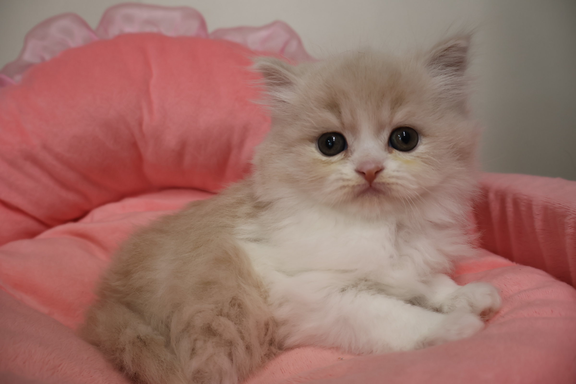 ☆自家繁殖☆ クリームタビー&ホワイト 立耳 長毛 人気のクリーム系☆お目めクリクリ可愛い男の子☆